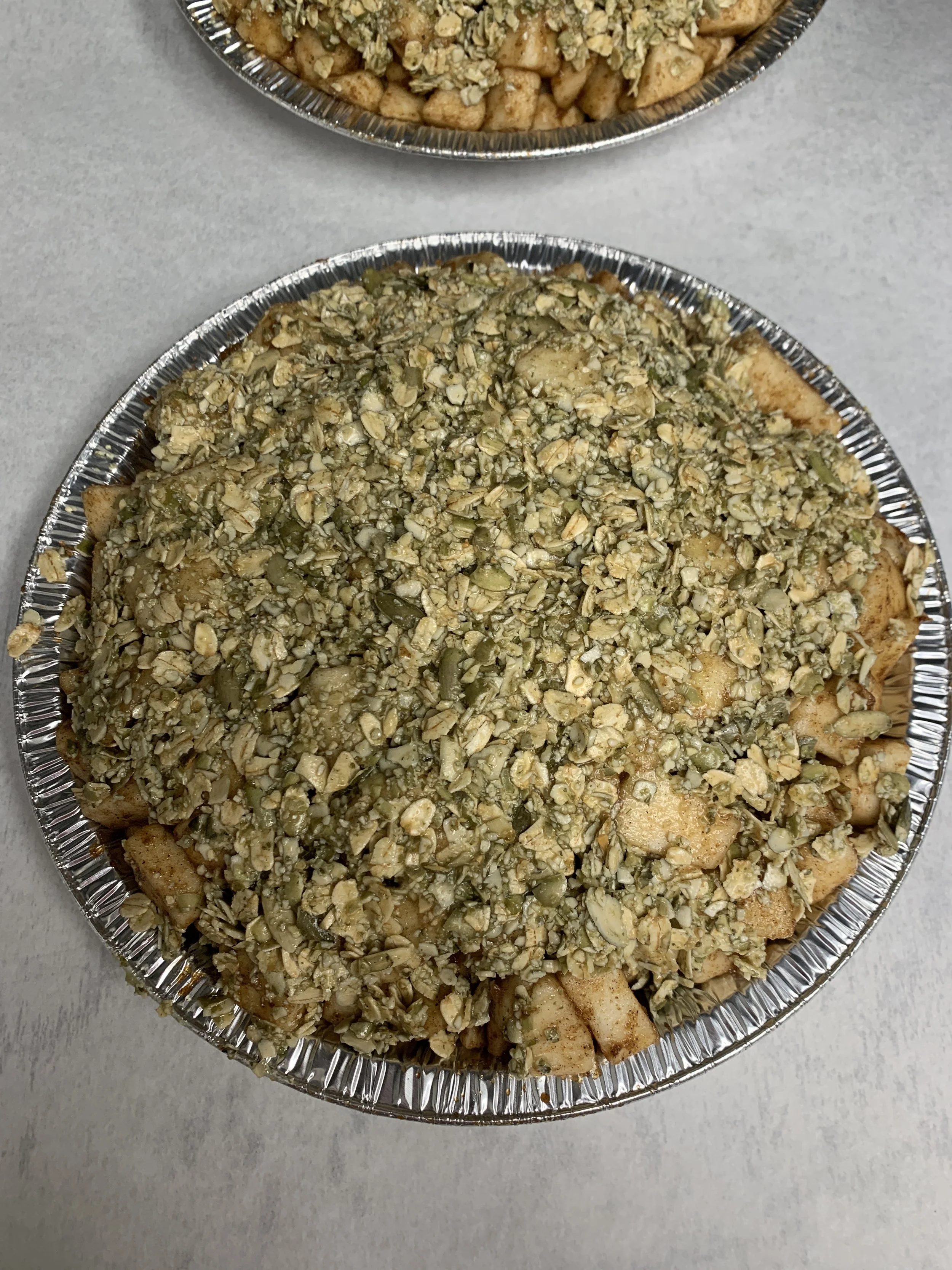 - APPLES, COCONUT FLOUR, OATS, CINNAMON, CARDAMOM, VANILLA, COCONUT SUGAR, ARROWROOT, EVOO, SEA SALT $50 SERVES 8
