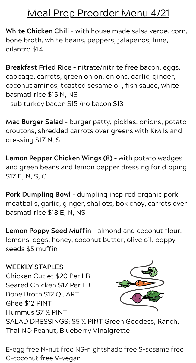 Options include Dehm’s Way (extra protein), low FODmap, grain free, Family Style for 4, 5 or 6 and substitutions/additions. Check the drop down menus under each item for options.